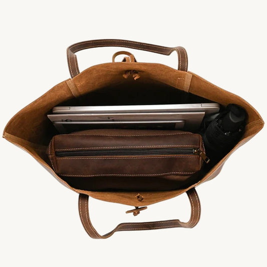 A leather tote generally opens wider and more effortlessly than a purse. Additionally, think about how you prefer to carry the bag (on your shoulder, tucked in the crook of your arm, or a combination of both), and ensure that the length of the strap or straps is suitable (or adjustable).