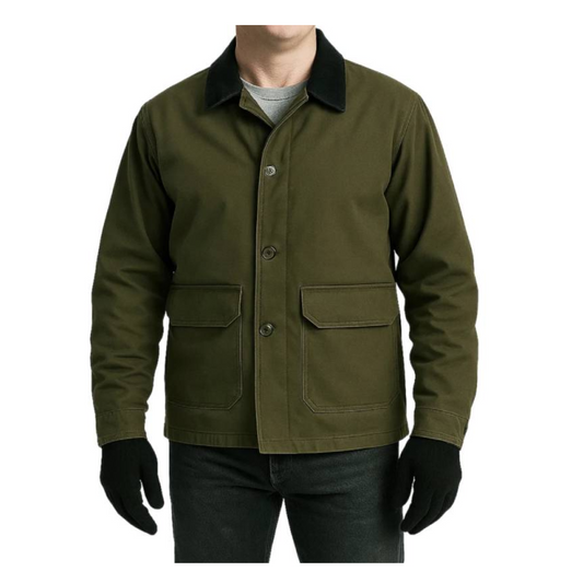 Men's Green Cotton Fabric Shirt Style Collar Jacket