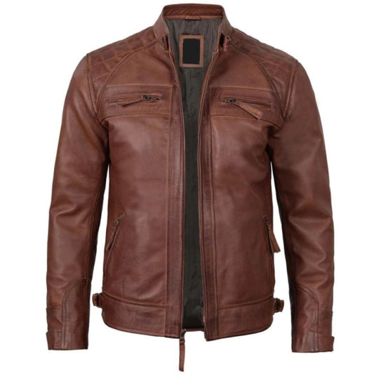 Men's Distressed Brown Full Grain Leather Biker Jacket