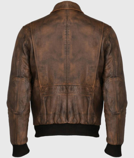 Brown A2 Style Leather Flight Jacket - Vintage Aviator Look