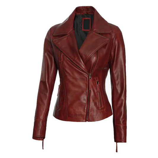 Maroon Leather Jackets for Women: This suit is about bringing color powerfully and distinctively that does not compromise style.
