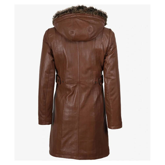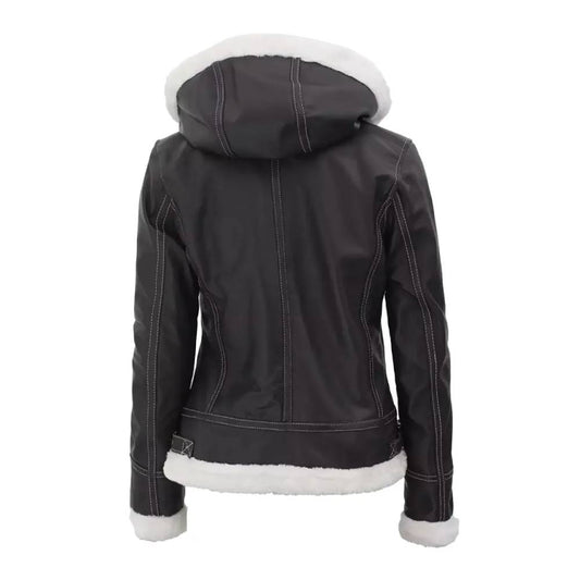 Women's Brown Leather Jacket with Removable Faux Shearling Hood
