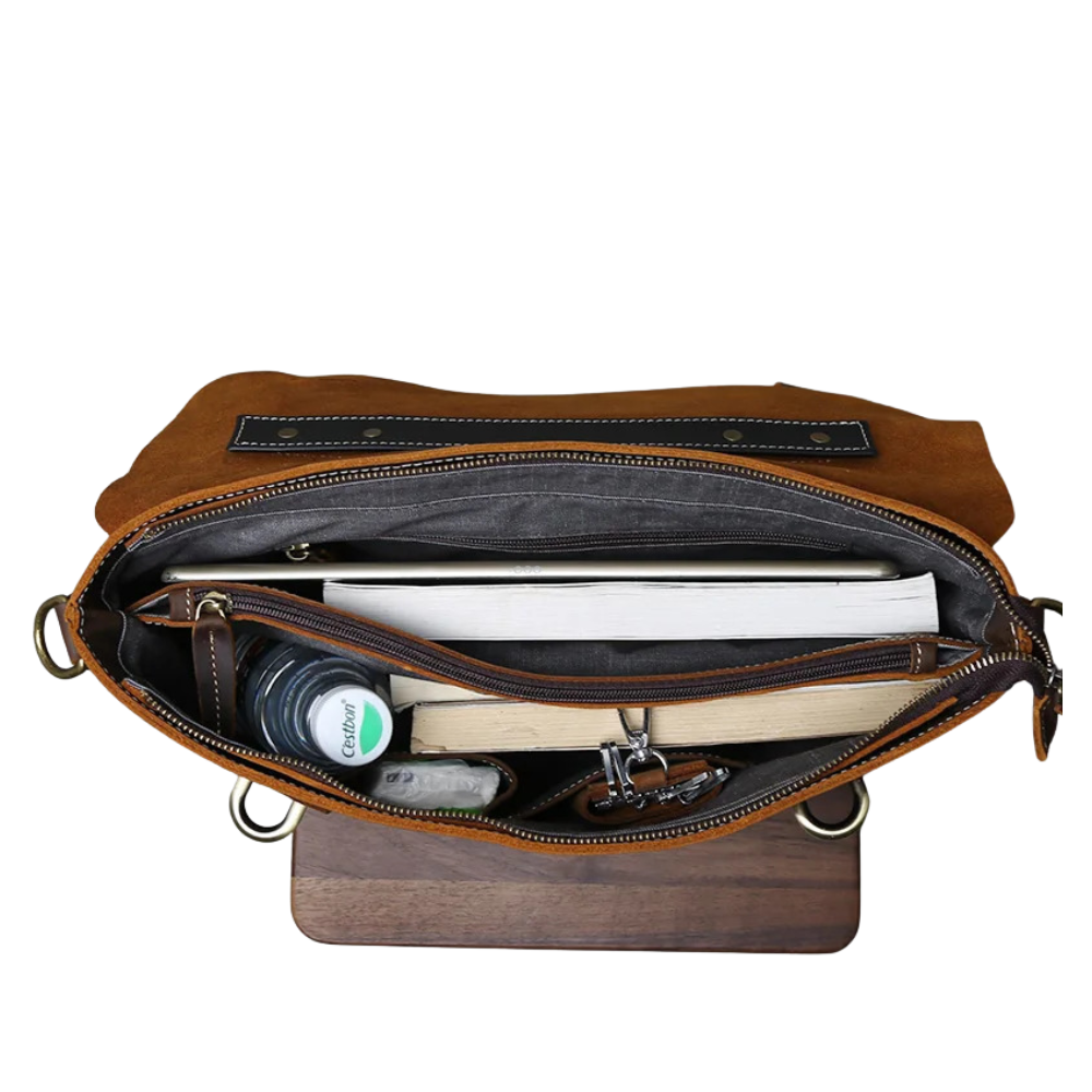 - Interior: One large compartment and a small zipper pocket for easy organization